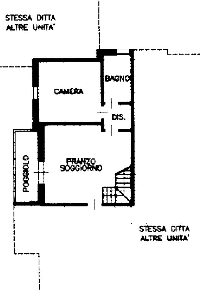 L'immobile è composto da ingresso, soggiorno e cucina insieme, ma con possibilità di dividere i due spazi, serviti inoltre da poggiolo e un primo bagno finestrato dotato di vasca.