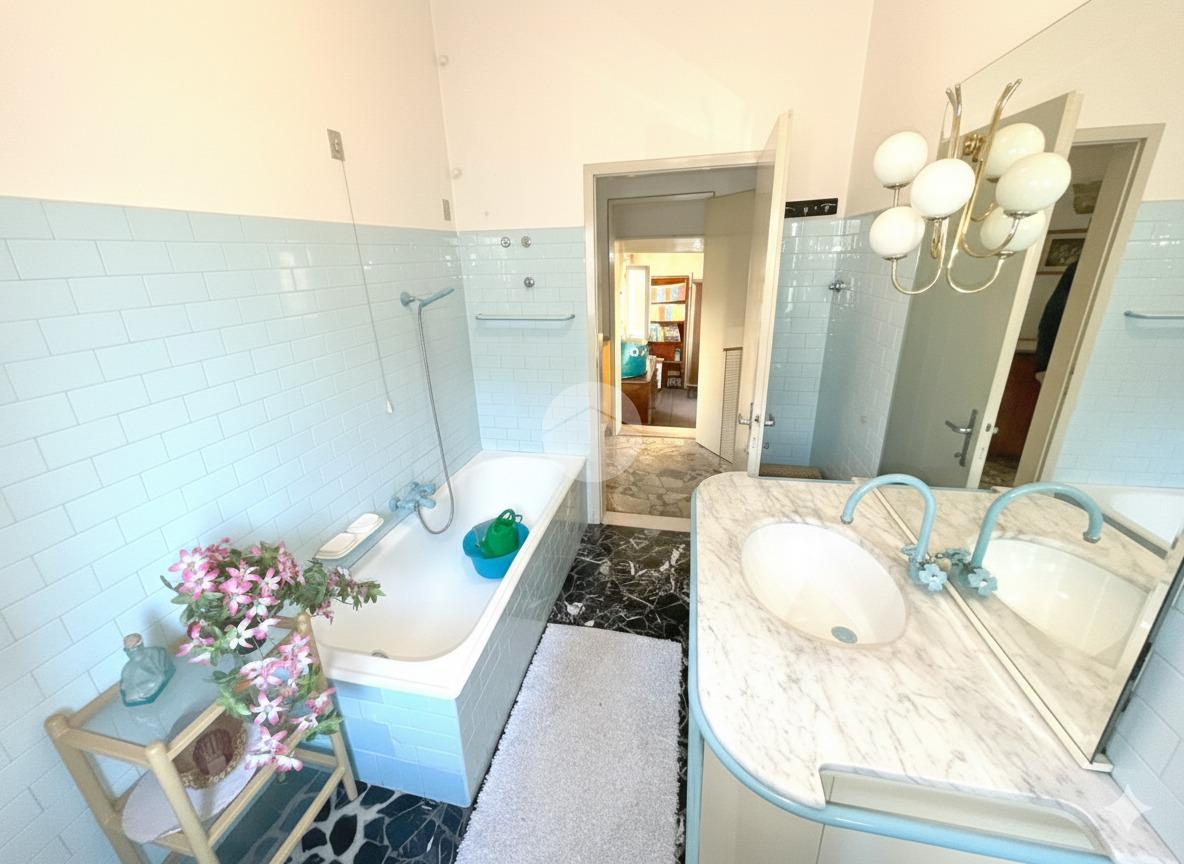 Al piano terra si trovano una cucina separata, un salotto luminoso, una lavanderia con bagno e l’accesso diretto al garage. Al primo piano si sviluppa la zona notte, composta da tre camere da letto e un bagno.