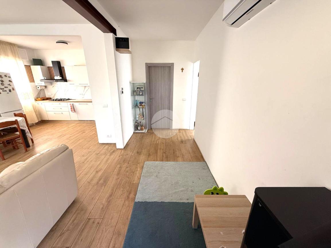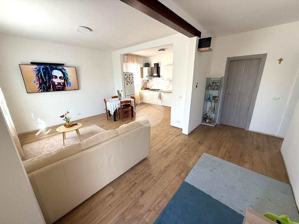 Gli spazi interni, moderni e ben distribuiti, accolgono una luminosa zona giorno open space con cucina e soggiorno, creando un ambiente conviviale e funzionale. La zona notte è composta da due camere da letto e due bagni, mentre una comoda area lavanderia/ripostiglio completa l’organizzazione degli ambienti, rendendo la casa pratica e adatta alle esigenze quotidiane.